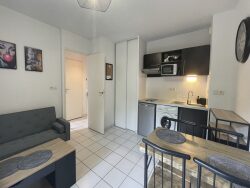 - Une entrée avec placard, - Une séjour cuisine entièrement meublé et équipé, - Une chambre aménagée avec literie et meubles de rangement, - Une salle d'eau avec douche, WC, vasque, miroir.