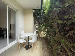 - Une terrasse avec table et chaises exposé Sud-Est, - Deux places de parking aériennes.