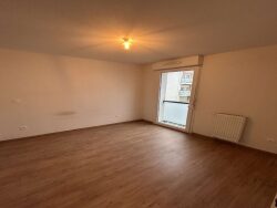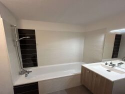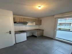 Dans une résidence récente, appartement T2 de 44.84 m², au 1er étage, comprenant une entrée avec placard mural donnant sur une pièce de vie, une cuisine aménagée et équipée, une chambre avec placard, une salle de bain avec un WC.