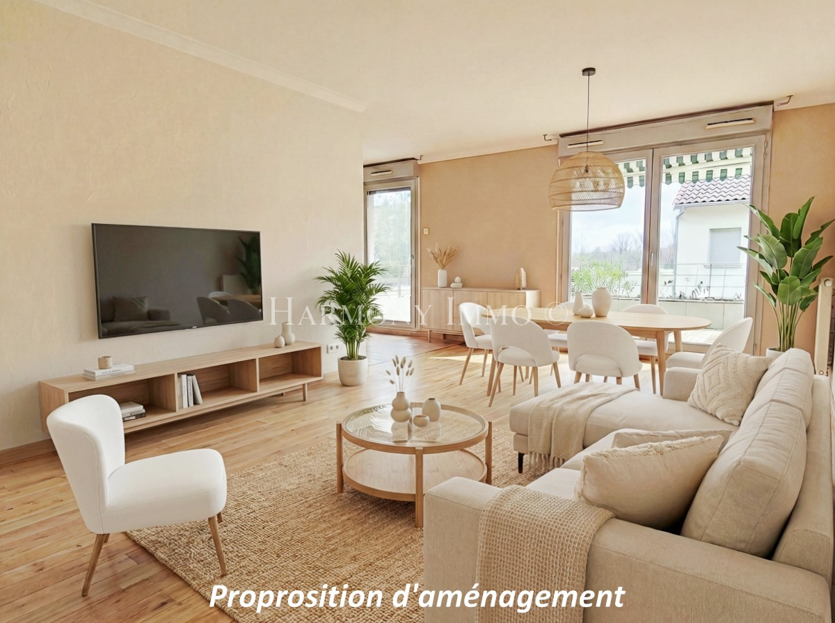 A 20 minutes du centre de Lyon, sur la commune de Fontaines sur Saône, découvrez ce bien, rare à la vente, un spacieux T2 de 64 m2 avec jardin et garage. Il se situe au rez-de-de-chaussée dans la résidence l'Ile au Roy édifiée en 2001, sur les quais de Saône. Cet appartement est un ancien T3 dont la configuration a été repensée et décoré par un architecte d'intérieur, créant de jolis espaces très cocoons L'entrée ouvre sur un beau séjour de 32 m2 avec une cuisine ouverte équipée et un accès direct à la terrasse et au jardin arboré. L'espace nuit est bien séparé par une porte coulissante et le dégagement avec grand placard aménagé mène à l'immense suite parentale de 21 m2. Celle-ci comprend un mur d'étagères avec son écran motorisé dissimulé, une belle tête de lit séparant de l'espace dressing entièrement aménagé sur toute la largeur de la pièce, et une salle de bains avec baignoire. Des toilettes séparées complètent cet espace. Profitez des belles soirées d'été à l'abri des regards, sur la terrasse et son jardin clos, sans aucun vis à vis. Un box fermé avec mezzanine est compris dans le prix. Vous serez séduits par l'environnement dans la verdure, au calme dans une résidence conviviale qui se compose de 35 logements et qui a été ravalée en 2020, par les quais de Saône avec ses activités ludiques et sportives. Taxes foncières : 1045 euros. Charges de copropriété : 114 euros / mois. Chauffage individuel gaz Arrêt de bus au pied de la résidence : Ligne 40 Bellecour - Neuville et à 600 mètres : Ligne 70 Part Dieu - Neuville. Ecoles maternelles et primaire à 1,5 kms, Collège à 500 mètres. Ecole bilingue Ombrosa à 3 kms. Les informations sur les risques auxquels ce bien est exposé sont disponibles sur le site Géorisques : www.georisques.gouv.fr Pour visiter et vous accompagner dans votre projet, contacter Geneviève KANOUTE au 06 61 42 81 68 ou par courriel : genevieve.kanoute@harmonyimmo.fr - Annonce rédigée et publiée par un Agent Mandataire -