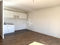 L'appartement est composé d'une entrée avec placard, une pièce de vie de 22m² avec coin cuisine, baignée de lumière grâce à son exposition sud-ouest une chambre ainsi qu'une salle de bains avec WC