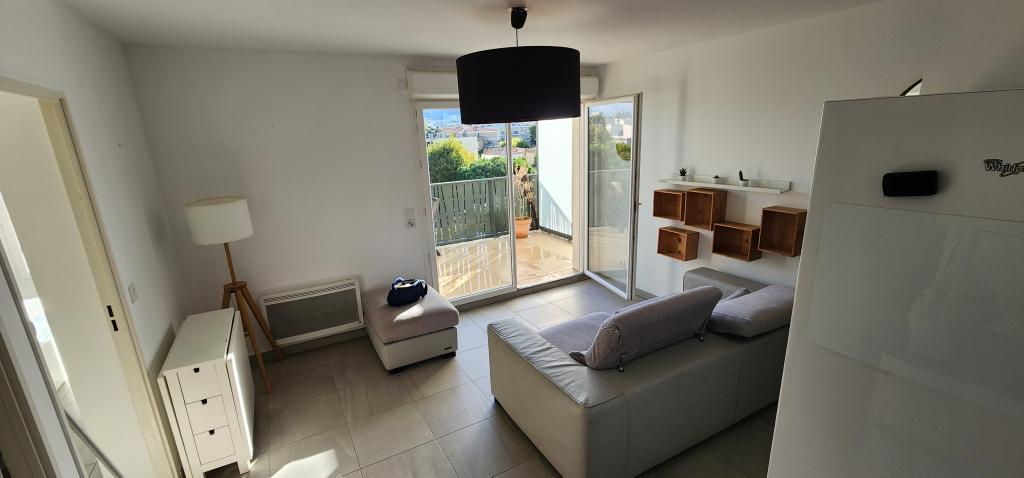 Cet appartement de 40m2 situé au 1er étage sur 2 est composé d'une pièce à vivre, salle d'eau avec WC, couloir, une chambre et une terrasse. Exposition sud