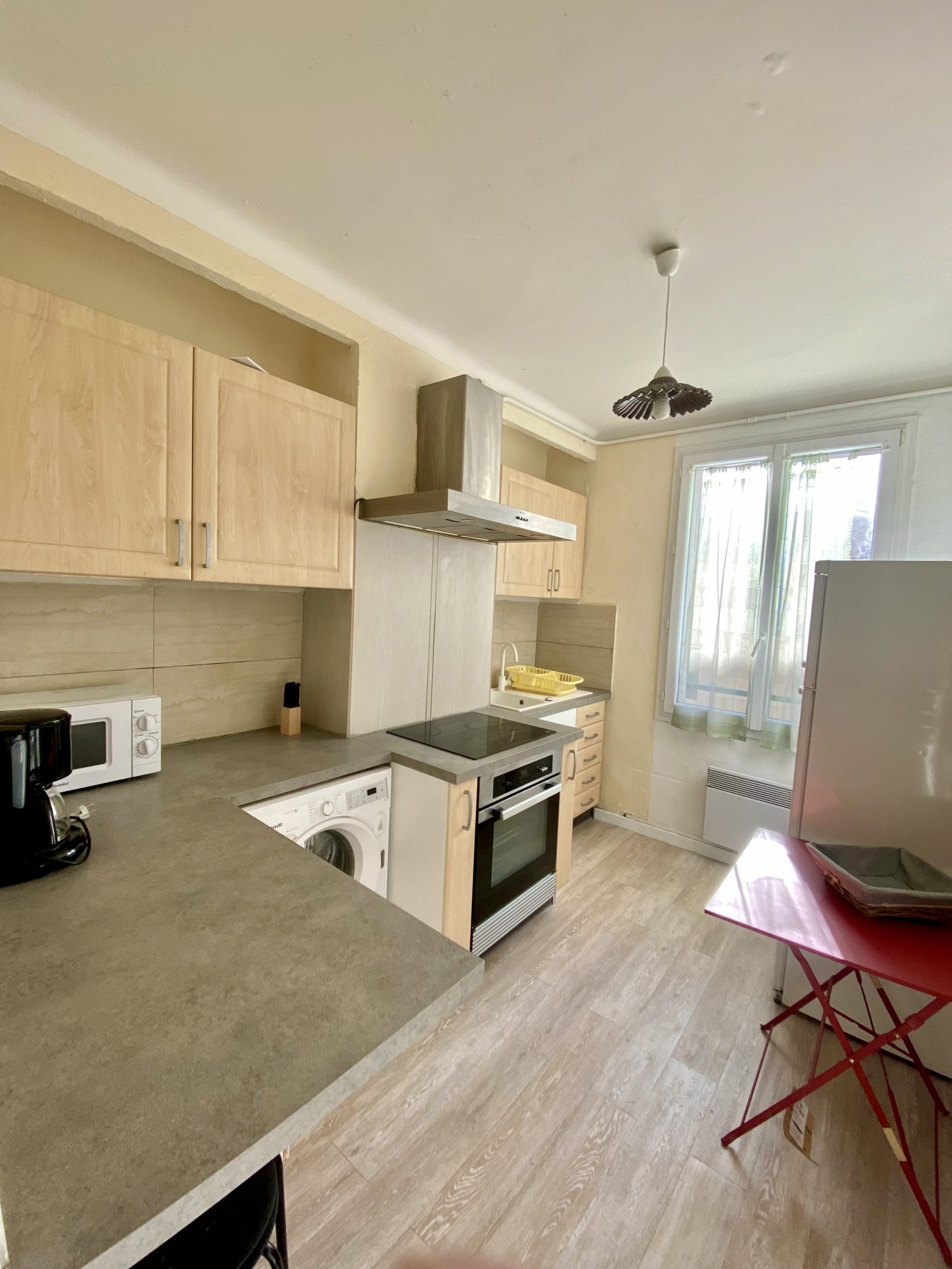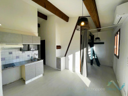Situé au sein de la Résidence La Frenaie, dans un environnement calme à deux pas du centre, l'agence L'Échappée Bleue vous propose ce charmant appartement T2 de 32,95 m2. Ce bien lumineux se compose de : - Un séjour avec une belle hauteur sous plafond et poutres apparentes et ouvrant sur un grand balcon filant offrant une vue dégagée et ensoleillée. - Un coin cuisine ouvert semi-équipé (plaques, hotte, rangements). - Une chambre séparée avec placards. - Une mezzanine, idéale pour un couchage supplémentaire. - Une salle d'eau avec WC. Stationnement : - Une place de parking privative attribuée (un vrai plus pour le secteur !). Prestations : - Climatisation réversible (séjour et mezzanine, chambre) - Double vitrage.