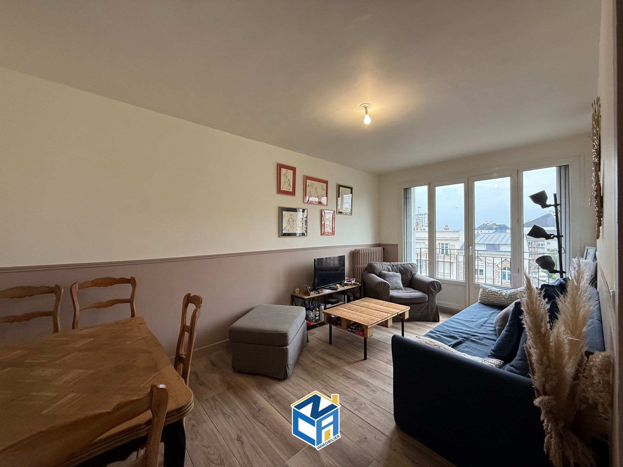 Cet appartement offre un grand séjour avec cuisine équipée, une salle d'eau et une grande chambre avec placard.