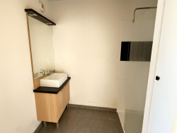 Appartement T2 lumineux Salon agréable Cuisine semi-équipée Grande chambre de 14 m2 avec placard Salle d'eau moderne avec meuble vasque et douche avec paroi vitrée Terrasse de 7 m2 permettant de profiter d'un cadre verdoyant Place de parking en sous-sol sécurisé