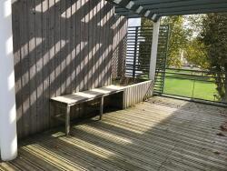 Situé au 2ème étage avec ascenseur, ce bien dispose d'une terrasse en bois de 25 m² traversant Nord/Sud avec banc et bac à fleur. Cuisine ouverte sur une lumineuse pièce de vie de 32m², deux chambres dont une avec placard mural, Salle de bain et WC séparés. Placards muraux dans le hall d'entrée et dans le couloir.