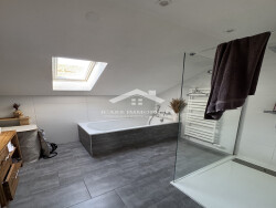 Situé au dernier étage d'une petite copropriété de 2 lots seulement, cet appartement de 95,90 m2 habitables offre une vraie indépendance et un cadre de vie soigné, à deux pas du centre de Soultz-Haut-Rhin. Le bien se distingue par ses volumes généreux et sa luminosité : le séjour-cuisine de près de 40 m2 ouvre sur un balcon et une terrasse de 17 m2 chacun, exposés sud-est. Une configuration idéale pour profiter du soleil dès le matin jusqu'en début de soirée. Le logement comprend 2 chambres (possibilité d'en aménager 3 à 4), une salle de bain avec baignoire et grande douche, un WC indépendant, 2 bureaux/dressing et une buanderie. La cuisine est entièrement aménagée et équipée. L'appartement est vendu en excellent état, sans travaux à prévoir. Le chauffage est assuré par un poêle à granules individuel ainsi qu'une climatisation réversible, pour un confort thermique toute l'année et des charges maitrisées - les dépenses energetiques annuelles estimées sont comprises entre 1 025 et 1 387 euros (DPE C, GES A).