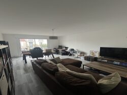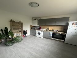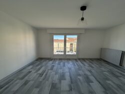 Appartement de type 3 au 1er étage dans immeuble à proximité de la gare comprenant : un couloir d'entrée avec placard, un séjour, une cuisine aménagée et équipée ( plaques, four et hotte), 2 chambres, une salle d'eau, un WC indépendant. Une cave privative et un garage. Libre le 09/06/2026