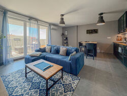 Il se compose d'un séjour lumineux ouvrant sur une terrasse de 10 m², de deux chambres, d'une salle de bains et de WC séparés. Le bien est entièrement climatisé et ne nécessite aucun travaux.