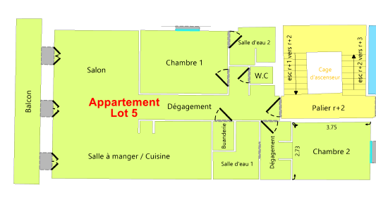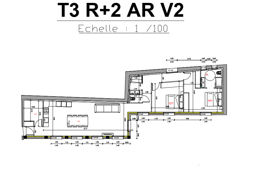 À vendre : T3 neuf de 86 m² entièrement rénové, au 2e étage d'un immeuble calme avec ascenseur.