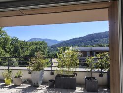 Dans un environnement calme, entouré de verdure, et sans vis à vis cet appartement bénéficie d'une vue très dégagée sur montagnes, et se trouve à proximité de toutes les commodités et de la vieille ville.