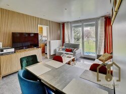 L'appartement, traversant, entièrement rénové et sans vis-à-vis, se compose d'un spacieux séjour de plus de 21m² donnant sur un balcon offrant une vue dégagée sur les jardins communs de la copropriété, d'une cuisine indépendante équipée, de deux confortables chambres, d'une salle d'eau ainsi que de WC séparés.