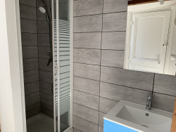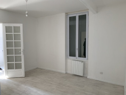 Un appartement situé au rez-de-chaussée surélevé et comprenant : entrée, salle d'eau, wc, local avec ballon d'eau chaude, séjour, cuisine aménagée et semi-équipée, deux chambres et une cave.