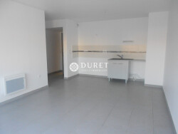 Appartement de type 3, comprenant : entrée, salon-séjour avec coin cuisine, deux chambres dont une avec placard, salle d'eau, toilettes indépendantes. Garage situé en sous-sol sécurisé. Libre le 19/04/2026