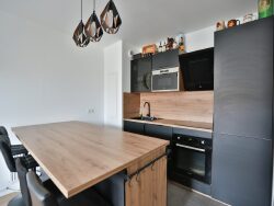 L'appartement se compose : d'une entrée avec placard, une belle pièce de vie lumineuse avec cuisine ouverte équipée et aménagée. le coin nuit propose 2 chambres avec placards, une salle de bains et un WC indépendant.