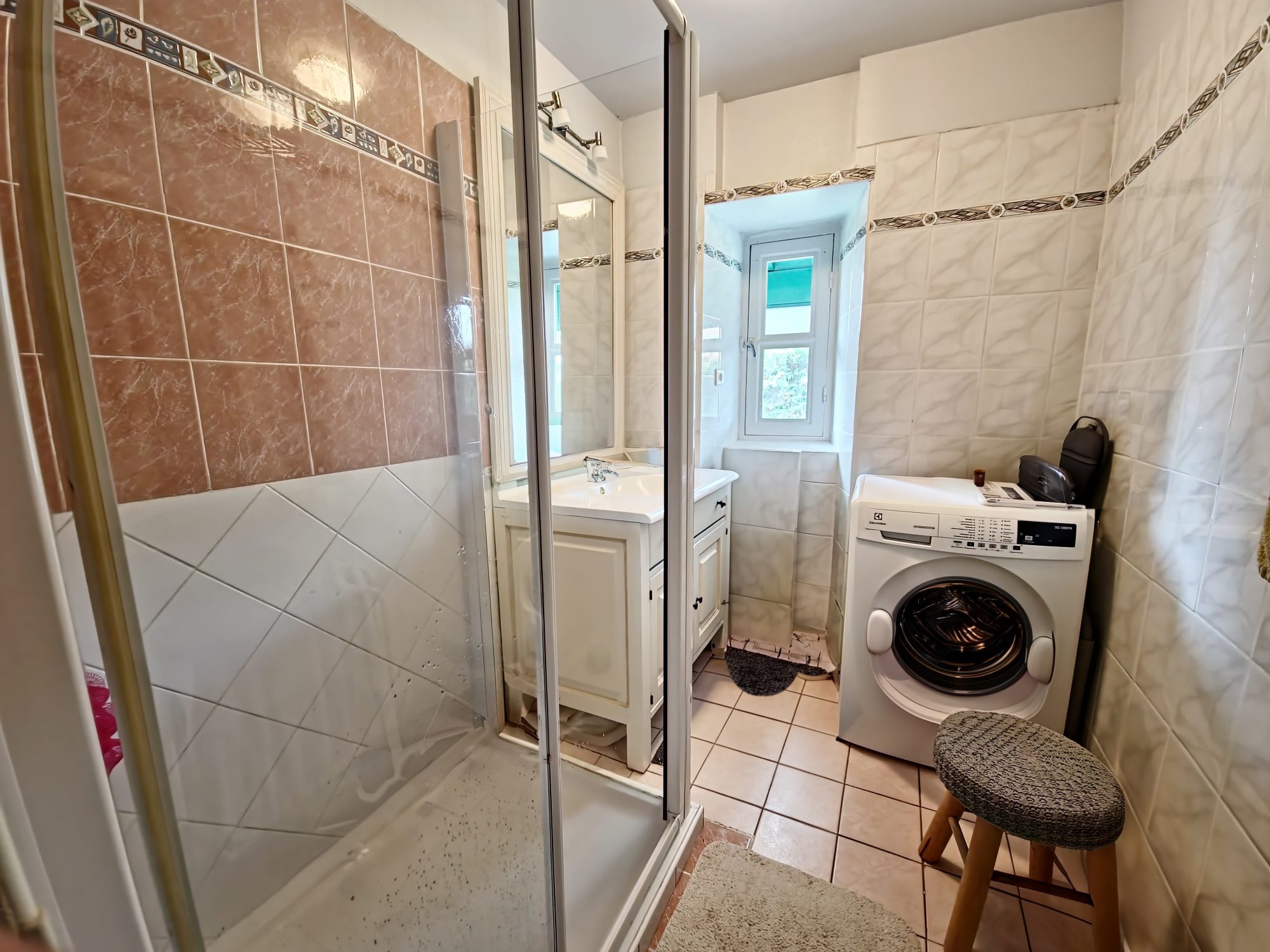Appartement T3 rénové situé au rez-de-chaussée d'une maison comprenant : une cuisine aménagée équipée ouverte sur le séjour, 2 chambres, une salle d'eau, un wc et un cellier.