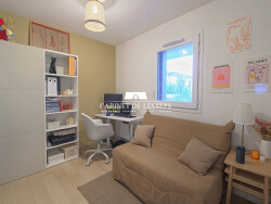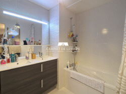 L'appartement se compose d'un séjour / cuisine à double exposition donnant accès sur une majestueuse terrasse bois de 54 m2, de 2 chambres avec placard dont une donne accès sur la terrasse, une salle de bain avec baignoire, meuble double vasque et coin buanderie ainsi que d'un WC indépendant.
