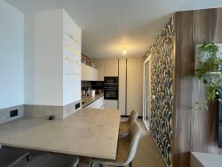 Imaginez-vous dans un séjour spacieux de 28 m², baigné de lumière et une vue dégagée qui vous couperont le souffle. La cuisine équipée haut de gamme est faite sur-mesure. Elle allie finesse et praticité. Elle est ouverte sur le salon pour plus de convivialité avec vos convives.