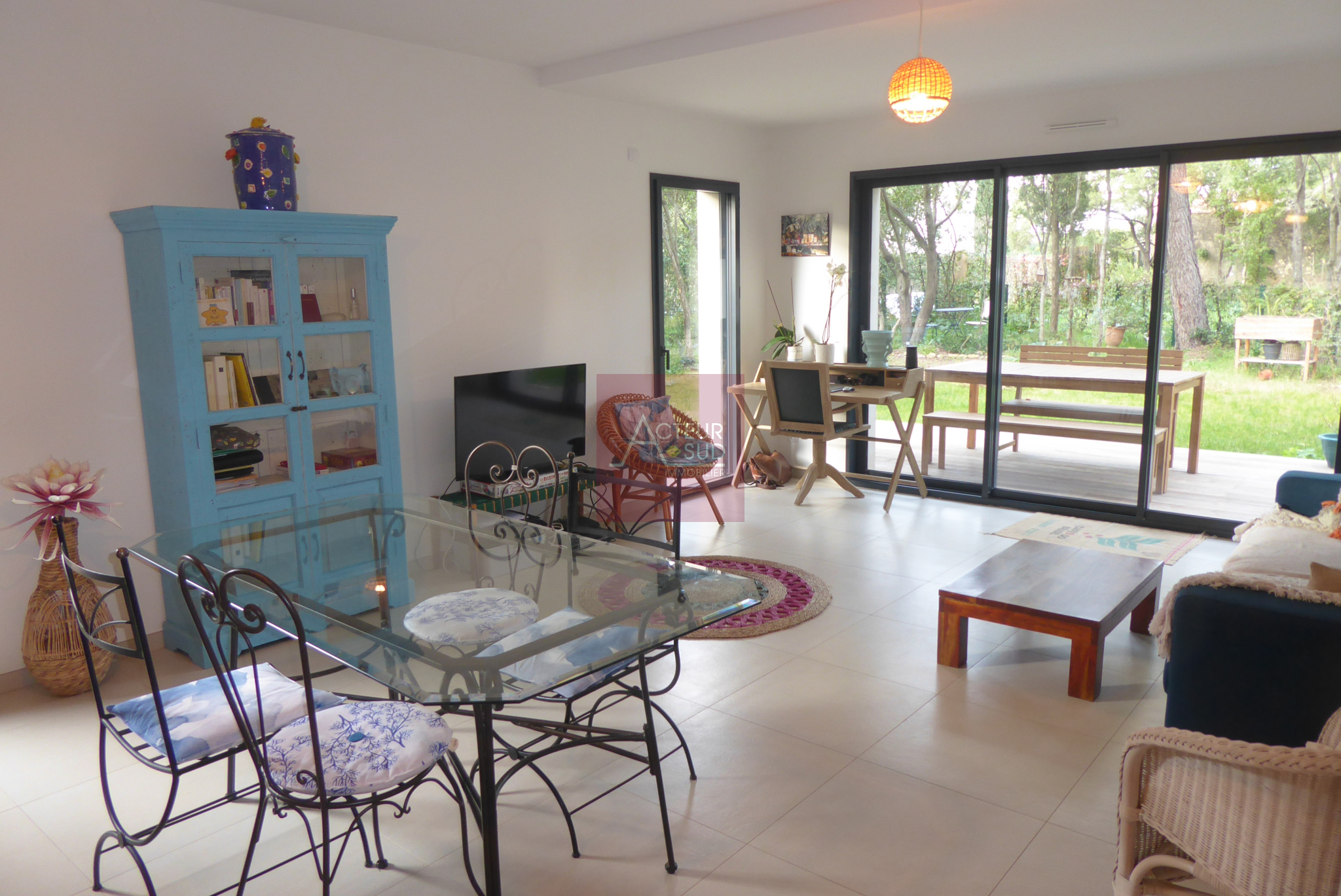 La terrasse de 17 m² vous invite à profiter des beaux jours en toute sérénité. La vue panoramique sur la mer, l'arrière pays, le Pic Saint Loup est saisissante.