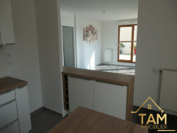 L'appartement se compose d'une pièce de vie spacieuse de 32 m² avec salon et cuisine ouverte aménagée, baignée de lumière grâce à deux grandes baies vitrées orientées sud / sud-est. Un cellier fonctionnel d'environ 4 m², idéal pour le lave-linge et le rangement, complète cet espace.