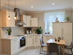 L'appartement est composé d'une cuisine séparée, un salon/séjour spacieux et lumineux, puis deux chambres dont une avec dressing et une seconde avec une pièce supplémentaire pouvant faire office de bureau. Il y a également une salle de bain avec WC séparé.
