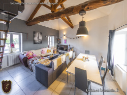 EXCLUSIVITE - SAINT LAURENT D'OINGT - Situé au centre village avec accès aux commodités à pied (école, arrêt de car, médecins, ...). Appartement en duplex dans petite copropriété d'environ 75 m2 habitables (67.05 m2 Loi Carrez) au 1er étage avec vue dégagée sur le vignoble et les collines. Il comprend: entrée, chambre, salle de bains et wc. A l'étage, cuisine équipée ouverte sur le séjour cathédral, mezzanine et chambre. Une cave complète ce bien. Appartement fonctionnel et lumineux, alliant le cachet de l'ancien et le confort du moderne. Raccordé à la fibre. Statut : copropriété. Nombre de lots : 3 lots. Quote-part annuelle du budget prévisionnel des dépenses courantes : 290 EUR/an. Plus de photos, de renseignements sur ce bien et/ou informations sur la commune du Bois d'Oingt (transports, commerces, écoles-collèges, loisirs...) sur notre site internet CABINET BUISANTIN ou Virginie Falatin 06 75 94 31 39