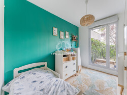L'entrée avec placard et visiophone dessert une cuisine entièrement rénovée en 2021 ainsi qu'un vaste séjour / salle à manger. La pièce de vie, lumineuse et bien agencée, s'ouvre sur une belle terrasse de 24 m² exposée ouest, donnant sur une cour intérieure arborée, sans nuisances.
