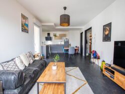 L'appartement baigne de lumière grâce à ses grandes ouvertures en PVC à double vitrage. La cuisine américaine, aménagée et équipée, est un véritable atout. Les deux chambres, la salle de bains et le WC indépendant complètent ce logement fonctionnel et confortable.