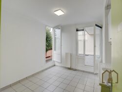 L'appartement, actuellement utilisé en local professionnel mais initialement comme une habitation (pour répondre à tous les besoins possibles), lumineux et sans vis-à-vis, se compose d'une grande entrée, d'un salon donnant sur sa spacieuse terrasse très au calme de 25m², d'une cuisine indépendante nue ouvrable sur le séjour, d'un dégagement, de deux confortables chambres dont une avec placard, d'une salle de bains à équiper ainsi que de WC séparés.