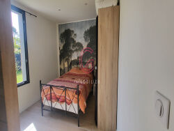 Joli appartement T3 meublé d'environ 55 m2, situé en rez-de-chaussée dans un ensemble immobilier divisé en deux appartements. Le T3 comprend une pièce de vie, deux chambres, une salle d'eau. Beau jardin paysager. Eau et électricité comprises dans les charges.