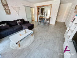 Il se compose d'une entrée avec placard, d'une pièce de vie lumineuse et traversante, orientée sur trois façades garantissant une belle luminosité toute l'année. La cuisine, entièrement équipée dispose de nombreux rangements et d'un cellier attenant. L'espace nuit offre deux chambres avec placards intégrés, une salle de bains et un WC séparé.