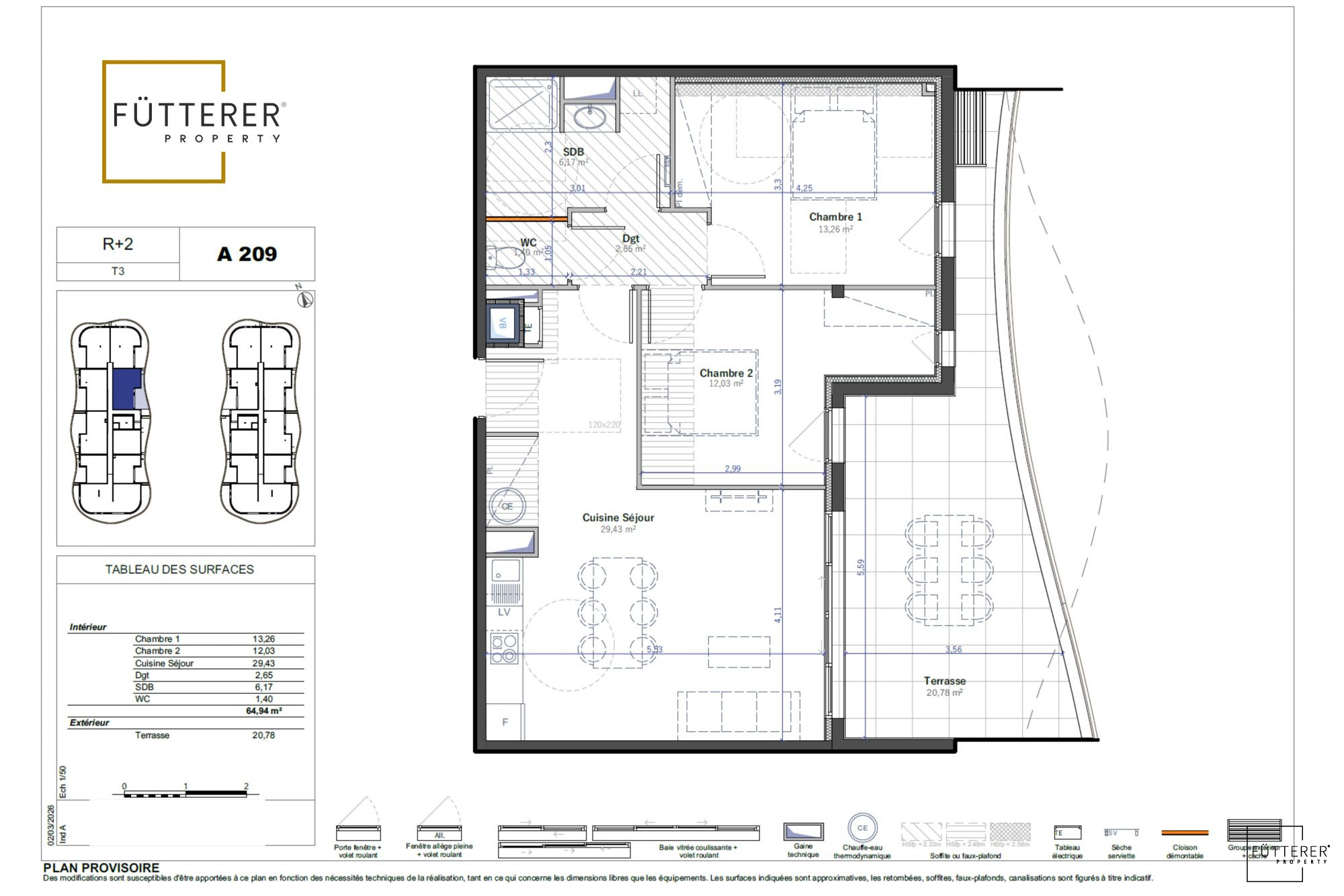 Avantages du neuf : Frais de notaire réduits (~3%) Éligible au Prêt à Taux Zéro (PTZ) Confort thermique et acoustique dernière génération Charges maîtrisées et garanties constructeur Le logement est conforme aux normes PMR pour une accessibilité universelle ainsi que d'une place de parking.