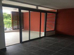 Votre agence Km immobilier à le plaisir de vous proposer sur la route de montabo à l'entrée de Cayenne cette résidence récente de 2019 dans un espace paysagé et arboré. la résidence est clôturé avec un portail automatique et portillon, ascenseur sur R+3 au niveau des étages. Cette résidence possède un appartement T3 récent vide et disponible immédiatement. Ce bien immobilier d'une superficie habitable de 63.56 m2 avec 11 m2 de terrasse fermée comprend un grand séjour, une cuisine aménagée, deux chambres avec un placard, une salle d'eau, un wc indépendant. Idéal pour de l'investissement locatif ou résidence principale. Cet appartement est situé à proximité des commerces, des services et des restaurants proche de la zone Hibiscus. Deux places de parkings sont vendus avec le logement.