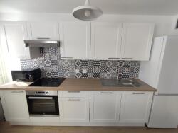 - Cuisine équipée : plaque de cuisson, réfrigérateur, four, micro-ondes, ustensiles de cuisine, rangements.