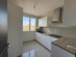 Appartement entièrement rénové de 76,10 m2 à louer vide à l'année Cet appartement, rénové et climatisé, se compose d'un hall, un grand séjour lumineux, une cuisine séparée semi-équipée (plaque à induction, hotte, four, micro-ondes, emplacement LV et frigo), un WC, 3 chambres dont 1 avec placard et une salle d'eau (avec branchement LL). Cave et parking collectif au sein de la résidence.