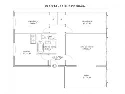 Appartement de T4 à louer au 1er étage comprenant un salon séjour, deux chambres avec placard, une salle de bain avec baignoire, WC séparés. Ce logement comprend une cave.