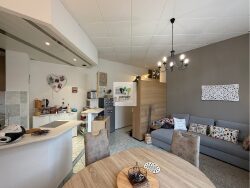 Il se compose d'une entrée avec dégagement, d'un salon-séjour spacieux bénéficiant d'une luminosité optimale toute la journée, d'un coin cuisine, de deux chambres confortables, ainsi que d'une salle de bain.