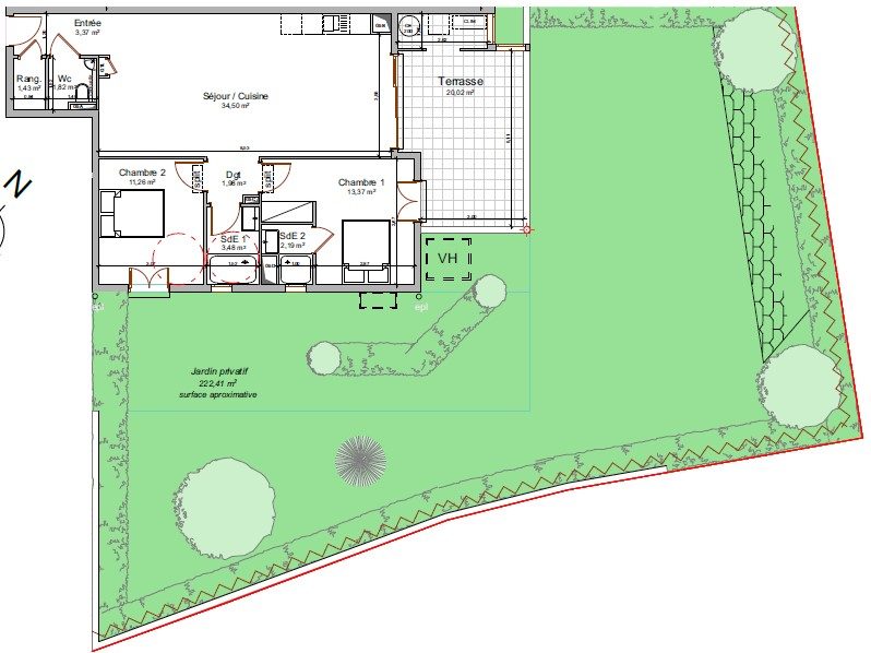 Dans ce programme de grand Standing, votre futur T4 vous y attend, en rez-de-jardin avec jardin privatif de 112 m². Surface habitable : 95.57 m² Séjour/cuisine : 37.42 m² 3 chambres dont 1 parentale 1 cave et 2 places de parking