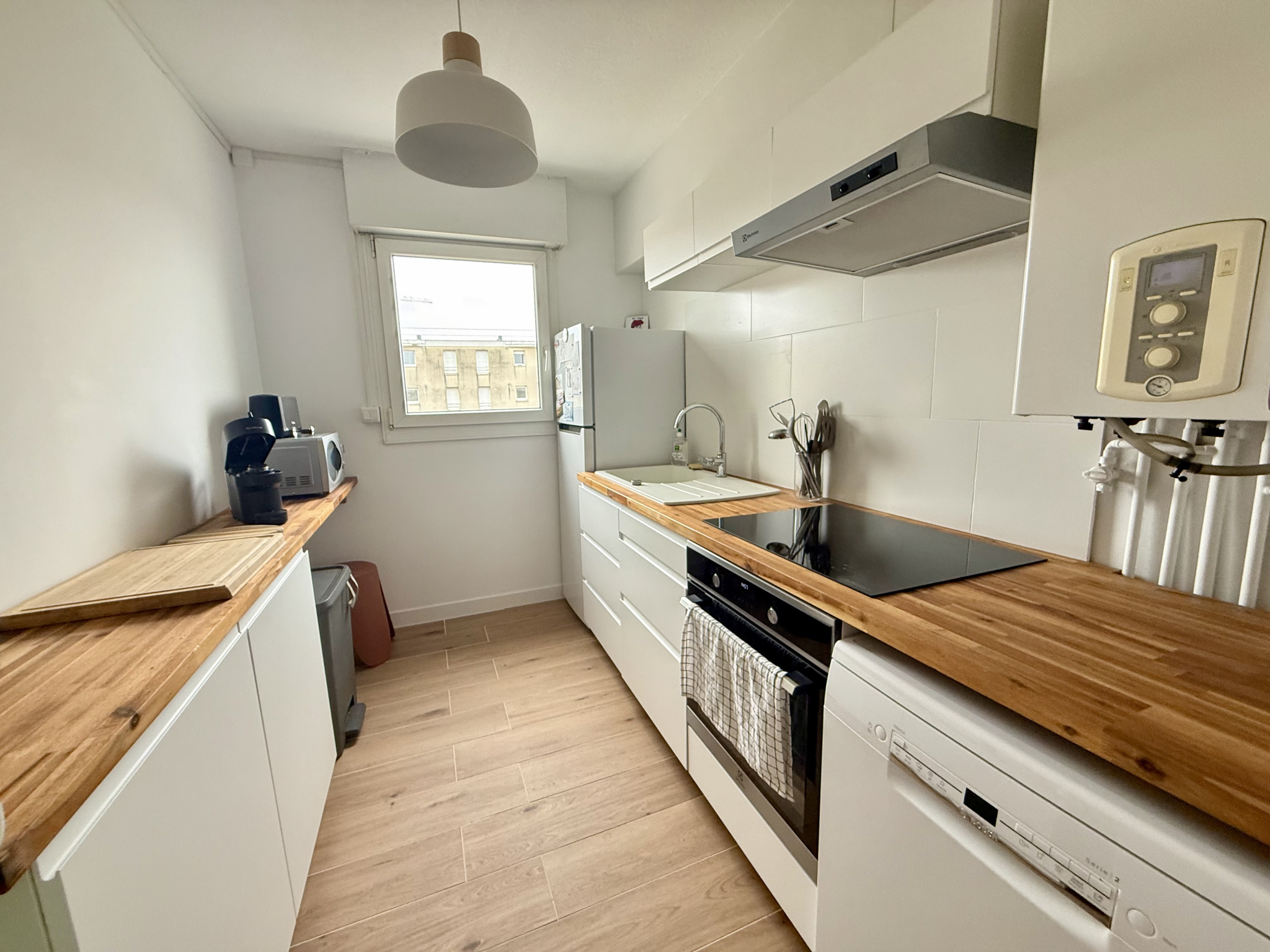 Situé au 6ème étage d'une résidence avec ascenseur, T4 en parfait état de 83,67 m². Il se compose d'une entrée/dégagement avec cellier et placard, salon séjour double donnant sur balcon filant, cuisine indépendante équipée, 2 chambres (possibilité d'une 3ème), salle d'eau, wc séparés. Une place de parking et un cellier indépendant complètent le tout.