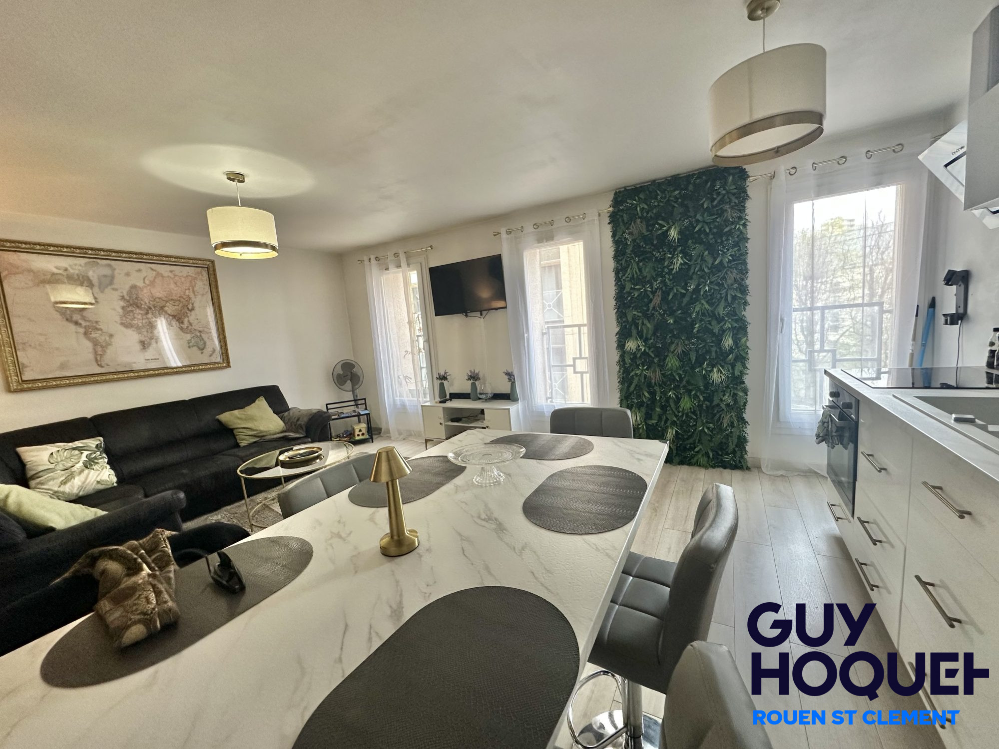 Rouen- Proche hôtel de police très bel appartement de 104 m2 ascenseur balcon plein sud parking, appartement baigné de lumières séjour salon de 30 M2 donnant sur grand balcon, belle cuisine équipée aménagée avec son petit balcon, grande entrée, nombreux dressing, 3 chambres 2 salles de douches, très bon DPE en D, chauffage collectif gaz, Taxe foncière 2200