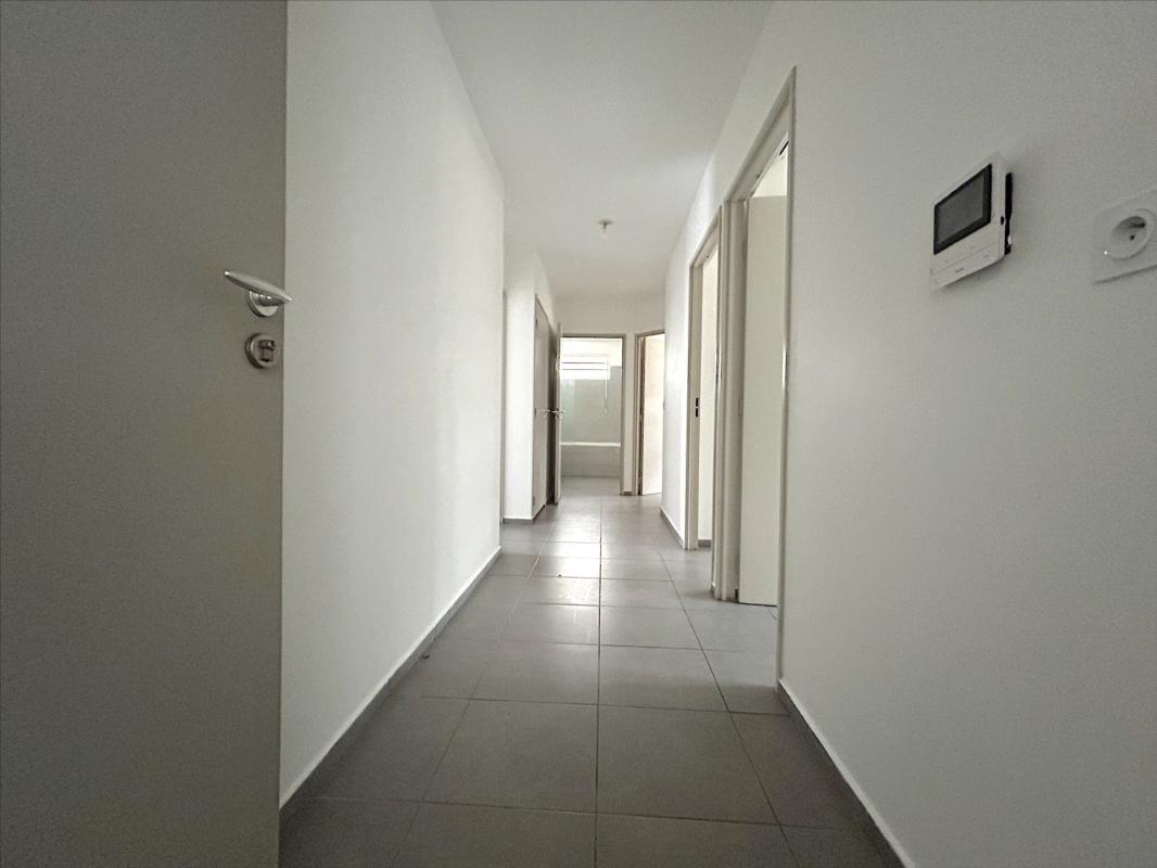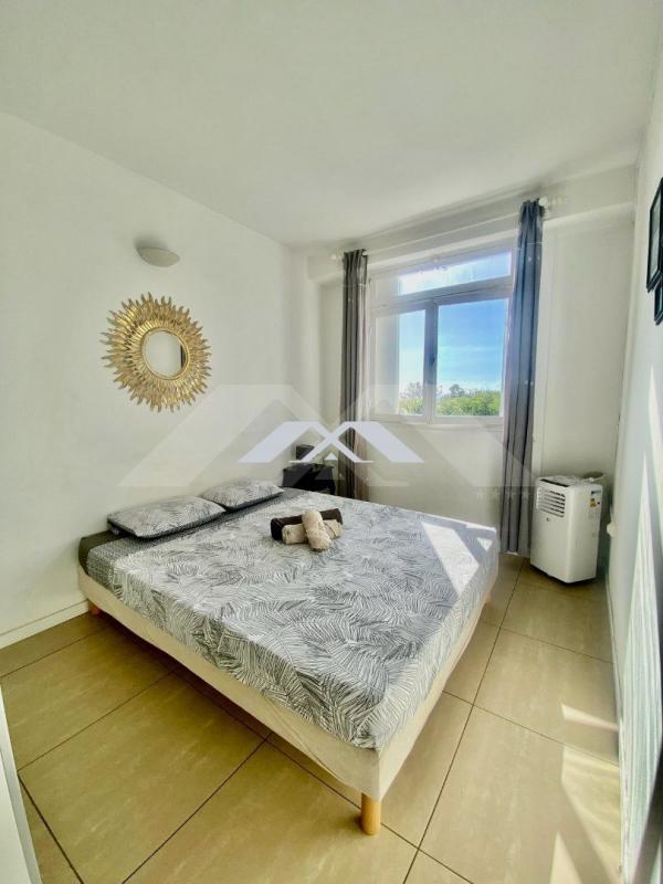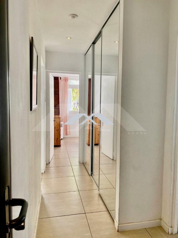 L'appartement est constitué : d'une entrée, une cuisine aménagée ouverte sur un grand séjour, une varangue, un dégagement avec placard, un wc séparé, une chambre avec placard, une salle d'eau avec douche, à l'étage : un dégagement, une salle de bains avec baignoire, une chambre avec placard et balcon, une chambre climatisée avec balcon et une grande terrasse d'environ 20 m2, pour compléter le bien 2 parkings privés. Chauffe eau solaire. Libre de toute occupation.