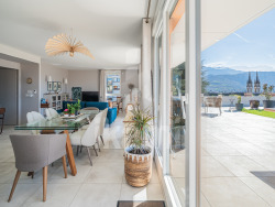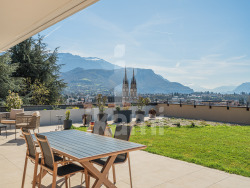 À deux pas du centre-ville de Voiron, appartement récent, offrant des prestations de qualité, modernes et des volumes rares. D'une surface habitable de 113 m2, ce bien se compose d'une pièce de vie d'environ 60 m2 avec une cuisine fonctionnelle ouverte sur le séjour, baignée de lumière et donnant directement sur une terrasse exceptionnelle de 208 m2, exposée plein sud. Cette terrasse constitue un véritable espace de vie extérieur avec une vue dégagée sur l'église de Voiron et imprenable sur l'ensemble de la Chartreuse et du Vercors. Ce logement dispose de deux chambres ainsi que d'un bureau, idéal pour le télétravail, d'une chambre d'appoint ou d'un espace polyvalent, avec une distribution fonctionnelle des espaces, adaptée à un cadre de vie confortable. Pour votre confort : Le chauffage est assuré par un système combinant gaz de ville et pompe à chaleur air/air, apportant confort et efficacité énergétique. Les charges annuelles s'élèvent à 2 900 euros et incluent le chauffage ainsi que l'eau chaude. Appartement récent, sans travaux à prévoir, situé dans un environnement recherché avec accès rapide aux commodités du centre-ville de Voiron. Les informations sur les risques auxquels ce bien est exposé sont disponibles sur le site Géorisques : www.georisques.gouv.fr - Annonce rédigée et publiée par un Agent Mandataire -