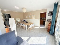 Ce logement situé au premier étage comprend : entrée, séjour double, cuisine indépendante aménagée et équipée, une arrière cuisine. Trois chambres, couloir de transition avec placards, deux salle de bains, WC. Une terrasse accessible depuis le séjour et la chambre parentale vient compléter ce bien.