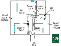 VALENCE - PROCHE AVENUE MAURICE FAURE - A louer appartement T4 de 79 m² situé au 3ème étage avec ascenseur. L'appartement se compose d'une entrée, d'un séjour de 19m² ouvert sur une grande terrasse, d'une cuisine indépendante (non équipée), de trois chambres et d'une salle d'eau. Garage et cave. Chauffage individuel électrique. Disponible à partir du 1er mars 2026.