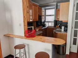 Il offre une belle hauteur sous plafond, un séjour plein sud ouvrant sur balcon filant, une cuisine indépendante, deux grandes chambres avec placards, et un plan fonctionnel typique de l'architecture de la Reconstruction.