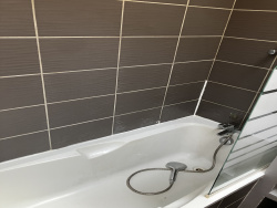 Une salle de bains avec baignoire.