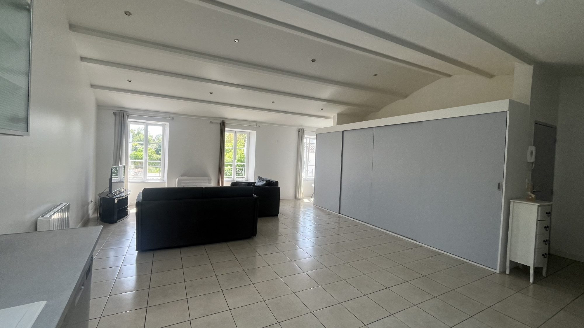 Il comprend une entrée avec placard, un séjour de 23 m² exposé plein sud ouvrant sur un balcon au calme, une cuisine, deux chambres dont une avec placard, une salle de bains et un wc séparé.