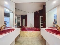une grande entrée avec placard, desservant un salon - salle à manger séparé par une cloison fine donnant sur un balcon de 12 m2, une cuisine indépendante donnant sur balcon, un dégagement comprenant deux chambres, une salle de bains avec baignoire et double vasque, un WC indépendant, un second dégagement avec placards, une chambre parentale donnant sur un balcon avec vue sur le parc de copropriété et le lac et une salle d'eau avec douche et meuble vasque,
