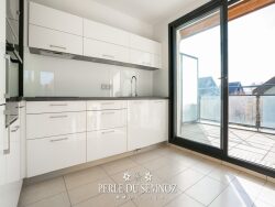 Exclusivité : votre agence locale et familiale Perle du Semnoz Immobilier vous présente cet appartement Duplex de 94 m2, 84 m2 Carrez, prenant place au 3ème et dernier étage avec ascenseur d'une copropriété récente située à Annecy. À proximité immédiate du centre-ville (y compris à pied ou en vélo), il bénéficie d'un accès facilité aux sorties d'autoroute, aux bus, aux commerces, ainsi qu'aux écoles et aux activités sportives/culturelles. Au premier niveau, l'appartement est ainsi disposé :