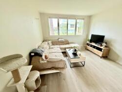 D'une surface de 57m²environ, celui-ci se compose d'une entrée sur une pièce de vie. Chaleureuse et lumineuse, celle-ci se compose d'un coin salon et d'un coin cuisine (aménagée). A cela s'ajoute; un WC indépendant, une salle d'eau ainsi que deux chambres dont une avec dressing intégré.